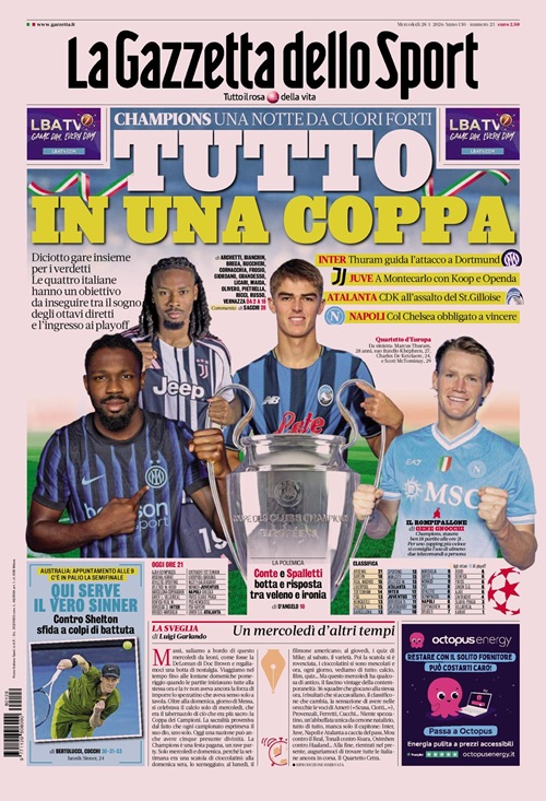 La Champions League e il calciomercato occupano le copertine odierne dei maggiori quotidiani sportivi nazionali. Queste infatti le prime pagine...