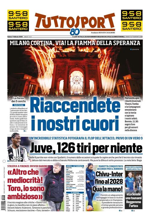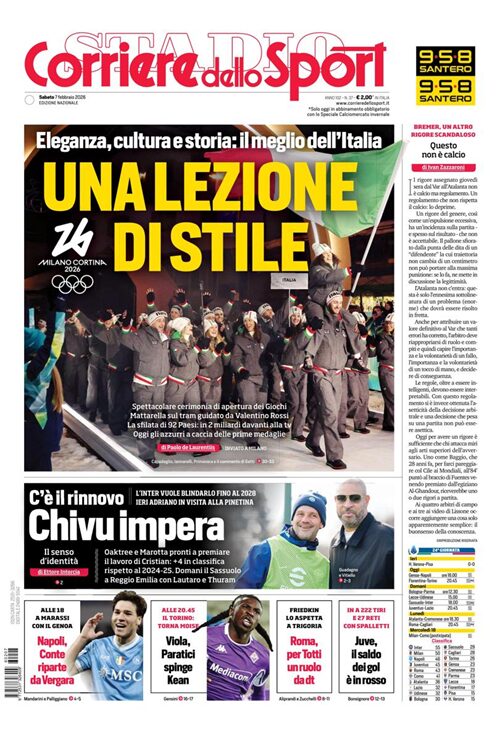 La cerimonia di apertura delle Olimpiadi si prende le copertine odierne dei maggiori quotidiani sportivi nazionali.