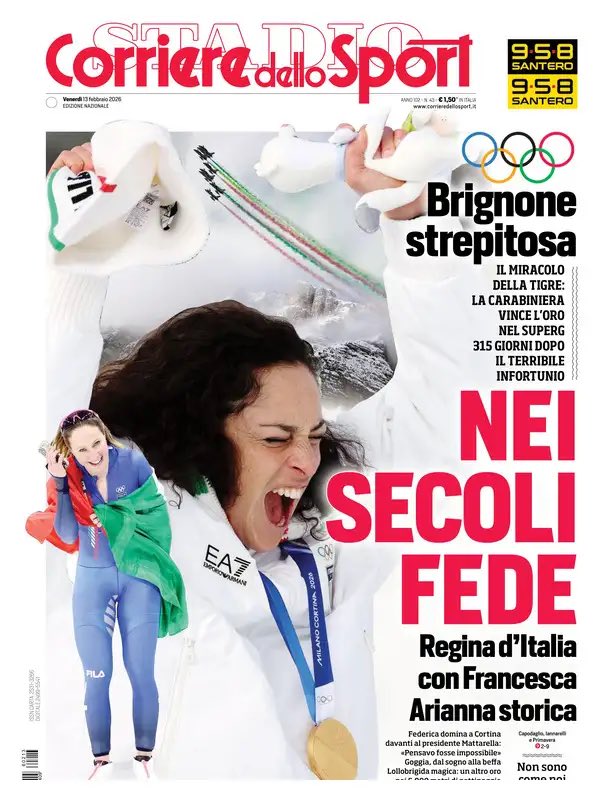 Le olimpiadi invernali occupano le prime pagine dei quotidiani sportivi in edicola oggi, venerdì 13 febbraio 2026. Ecco quelle di Gazzetta dello Sport, Tuttosport e Corriere dello Sport: