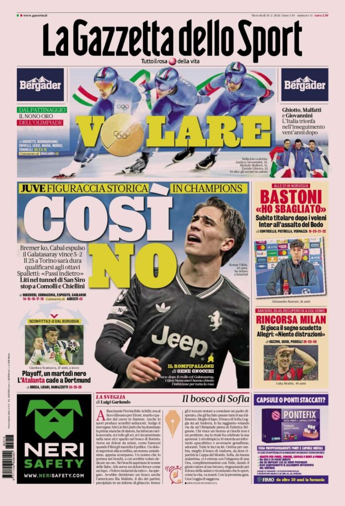 Le prime pagine dei quotidiani sportivi in edicola oggi, mercoledƬ 18 febbraio 2026...