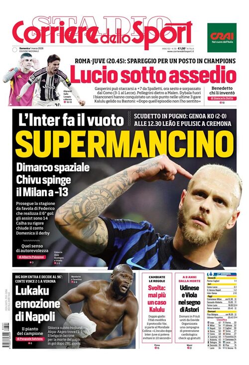La Serie A è l’indiscussa protagonista delle copertine odierne dei maggiori quotidiani sportivi nazionali.