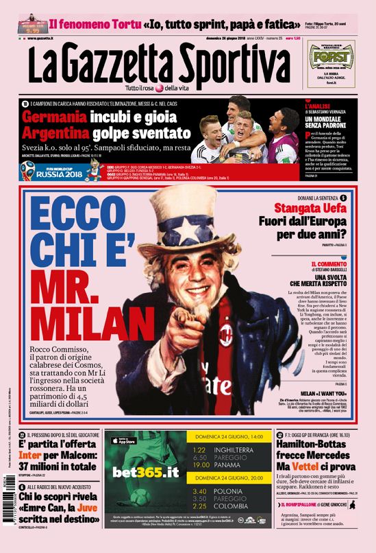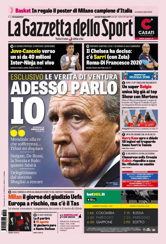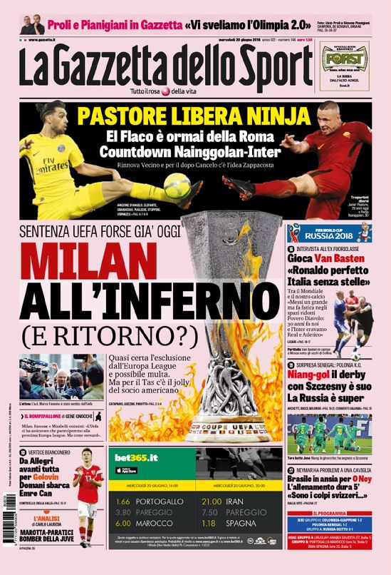 Tanto calciomercato oltre alla vicenda Milan-fair play economico e i risultati dei mondiali di Russia nelle prime pagine di questo...