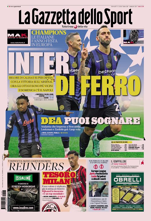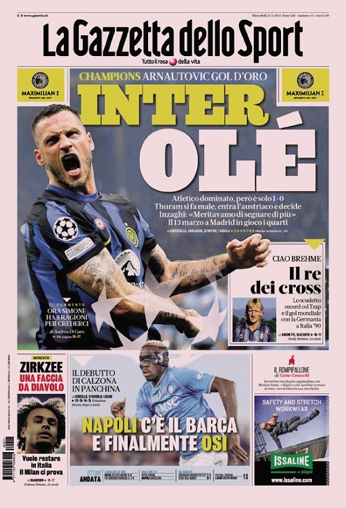 La vittoria dell’Inter in Champions League si prende le copertine dei maggiori quotidiani sportivi nazionali. Queste infatti le prime pagine...