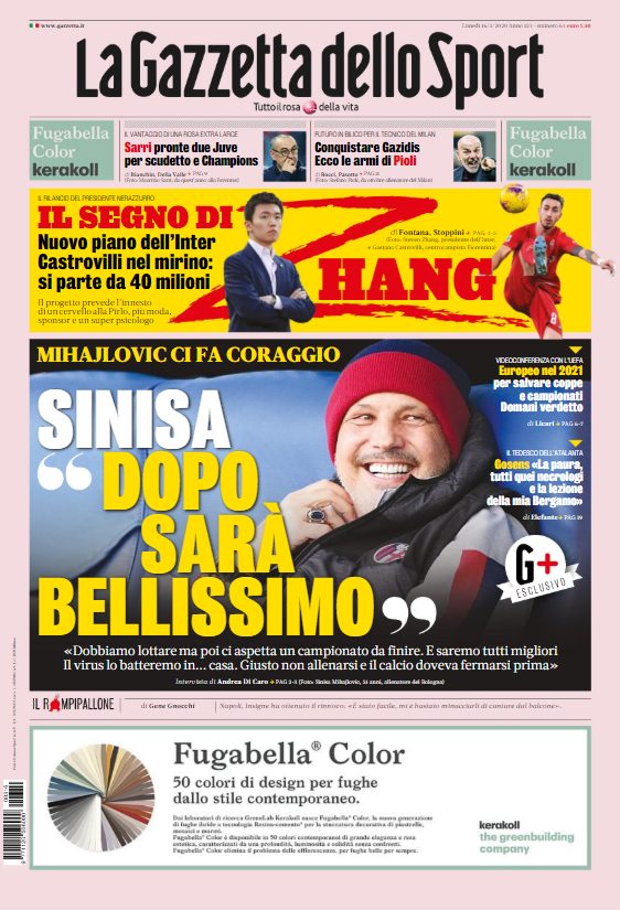 Ć sempre l’emergenza Coronavirus a farla da padrone sulle copertine dei maggiori quotidiani sportivi nazionali. Queste infatti le prime pagine...