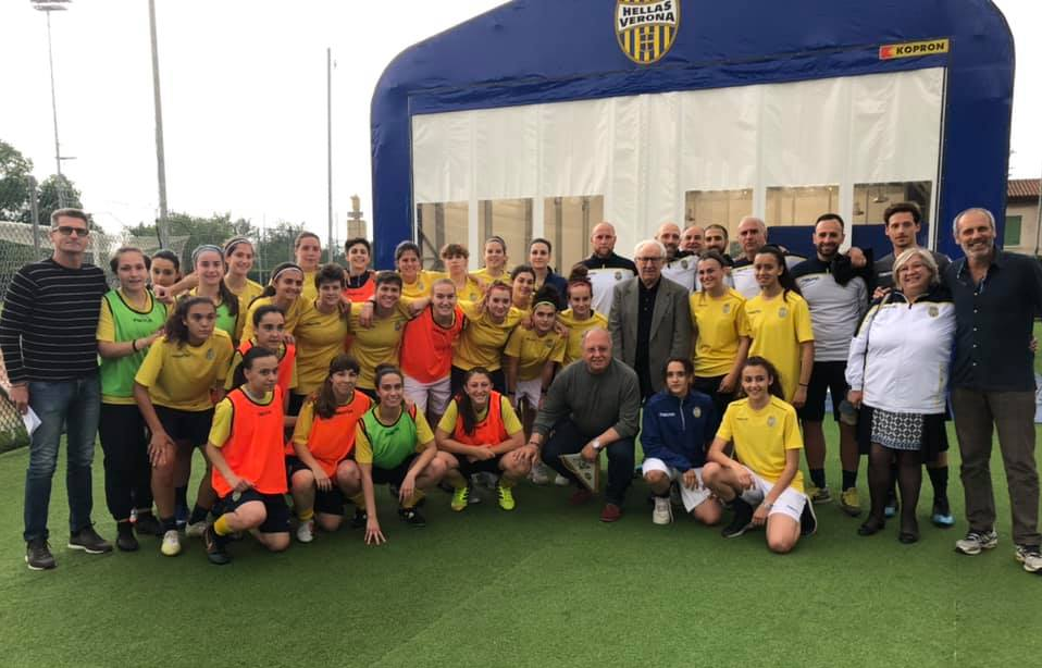 Gradita sorpresa per le ragazze del settore giovanile scaligero, raggiunte all’Antistadio da alcune leggende gialloblù C’erano anche Antonio Terracciano, Giancarlo...