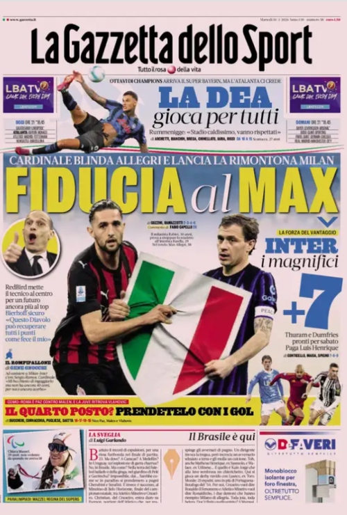 La Serie A e la Champions League si prende le copertine dei maggiori quotidiani sportivi nazionali. Queste infatti le prime...
